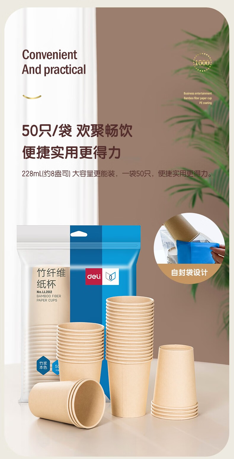 得力/deli 11033 一次性杯子 一次性水杯/紙杯 家用/辦公一次性杯子 加厚型大容量