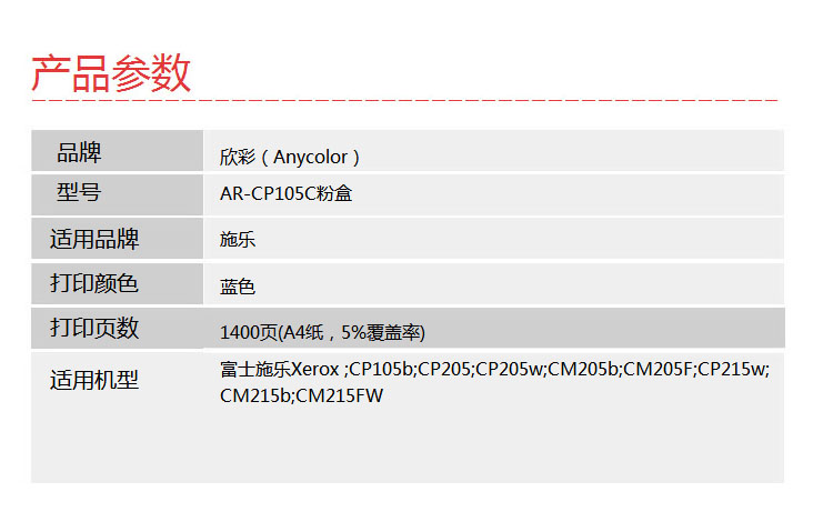 欣彩(Anycolor)CP105b粉盒(專業(yè)版) AR-CP105C藍(lán)色 CT201596適用施樂CP105b 205b 215 CM215fw 205