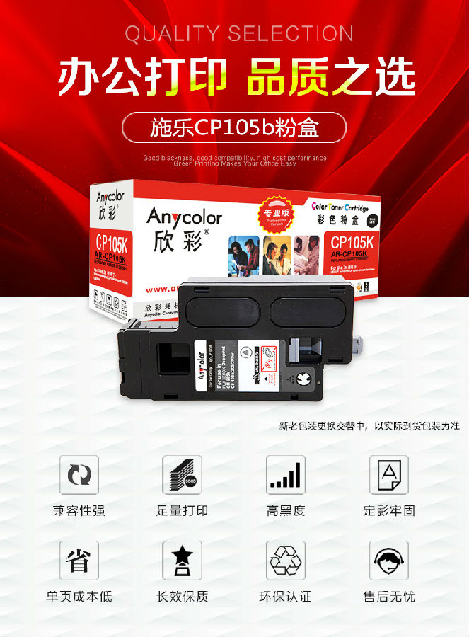 欣彩(Anycolor)CP105b粉盒(專業(yè)版) AR-CP105K黑色 CT201595適用施樂CP105b 205b 215 CM215fw 205