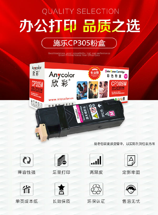 欣彩(Anycolor)CP305粉盒(專業(yè)版)AR-CP305M紅色 適用施樂(lè) Xerox CT201638 CP305D 墨粉筒 耗材
