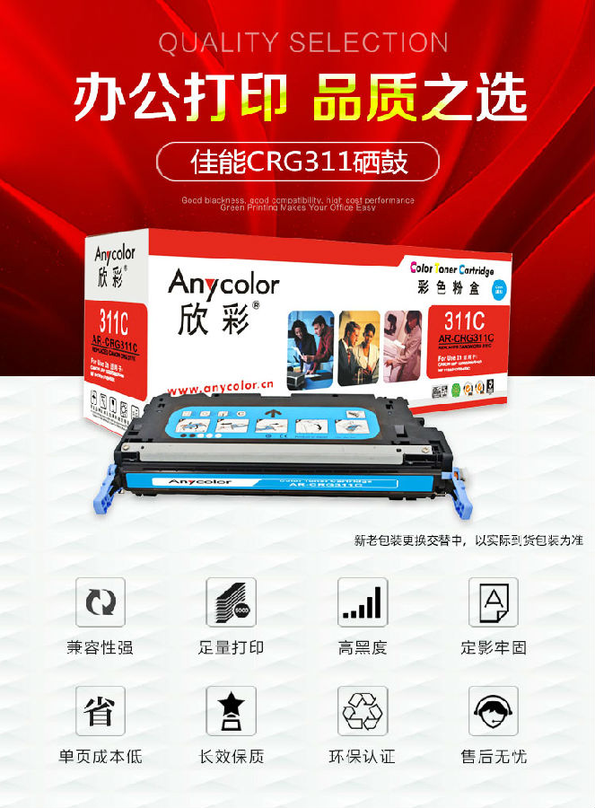 欣彩(Anycolor)CRG311硒鼓(專業(yè)版)AR-CRG311C藍色 適用佳能 CANON LBP5300 5360 5400