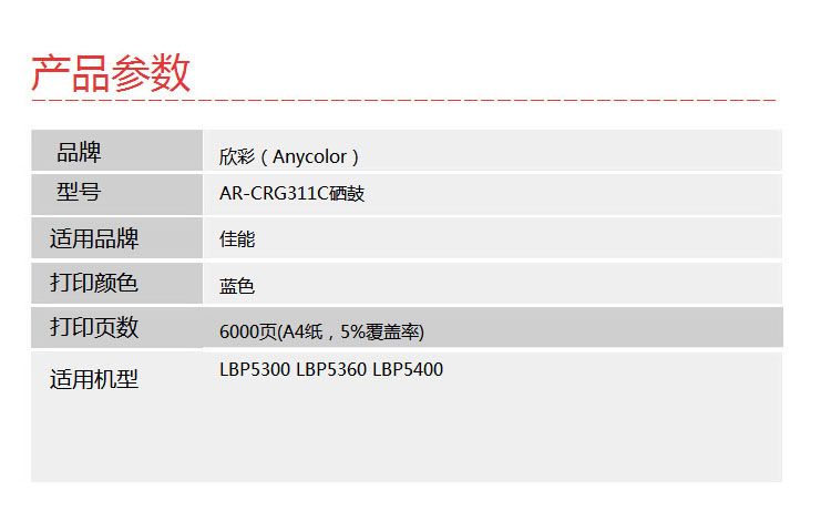 欣彩(Anycolor)CRG311硒鼓(專業(yè)版)AR-CRG311C藍(lán)色 適用佳能 CANON LBP5300 5360 5400